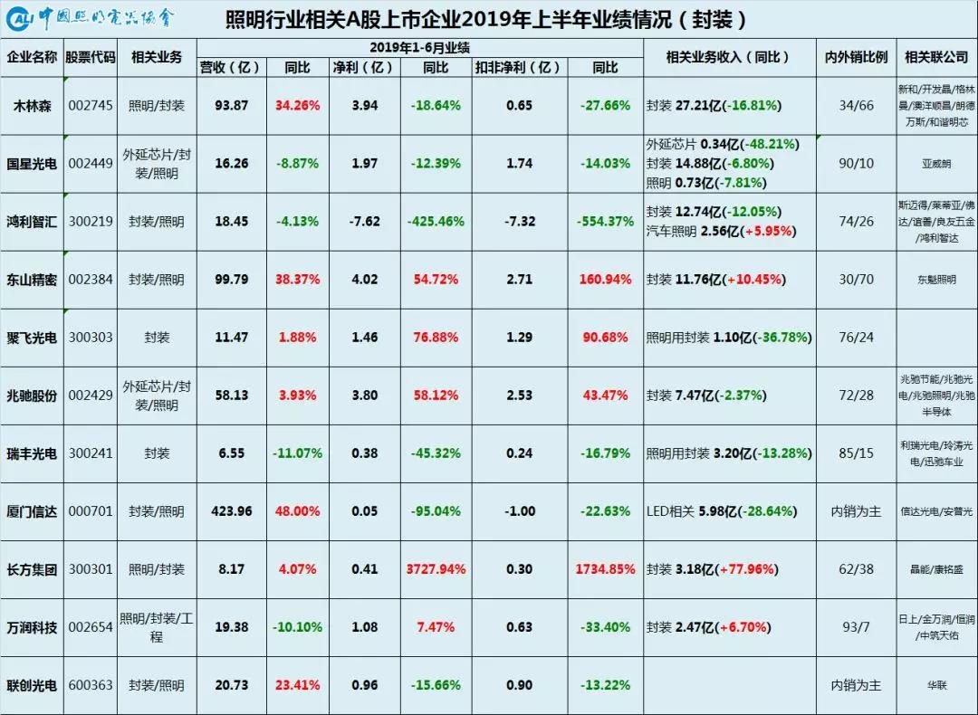 2019年上半年,受到此前上遊外延芯片擴大産能(néng)和目前下遊照明應用需求偏弱等供求關系方面(miàn)的影響,中遊封裝器件特别是照明封裝器件在受到上下遊雙向(xiàng)壓迫下,價格下行壓力較大,出貨量增長(cháng)乏力。顯示器件和背光器件形勢相對(duì)要好(hǎo)一些。不出意外,從2019年上半年各大封裝廠商公開(kāi)業績情況來看,營業收入和毛利率水平比之去年同期大多有所下滑。