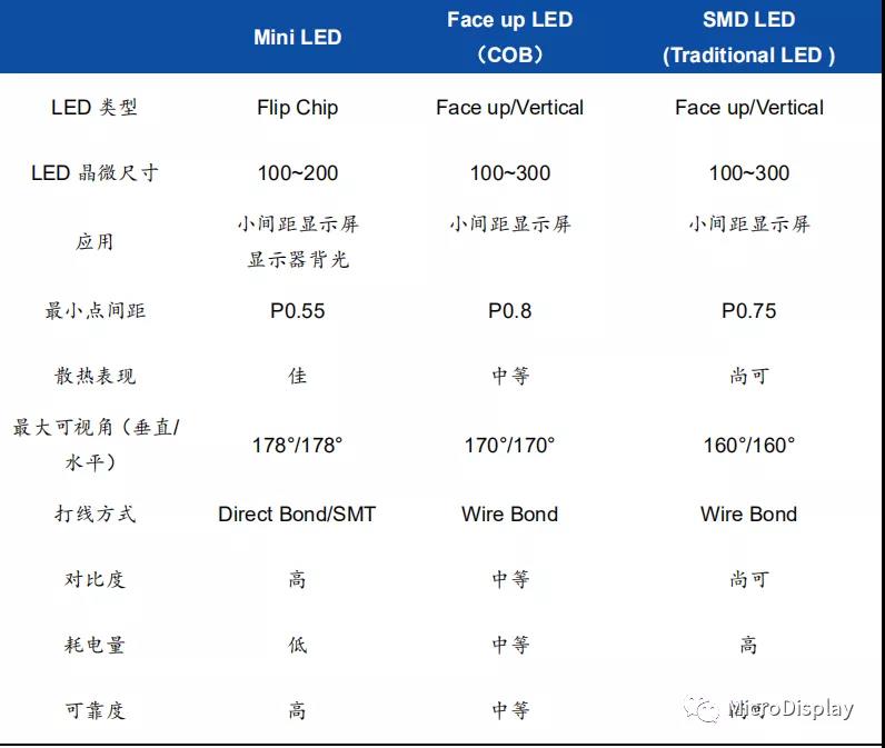 表2:miniLED與傳統LED性能(néng)對(duì)比