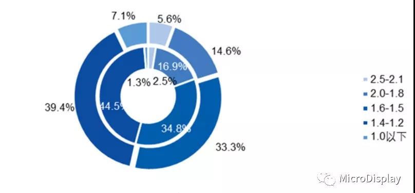 從2018年中國(guó)大陸小間距LED銷售結構來看,1.0以下間距的銷售額占比快速增長(cháng),大幅提升5.8個百分點。标志著(zhe)小間距LED顯示屏市場正快速向(xiàng)超小間距及miniLED過(guò)渡。