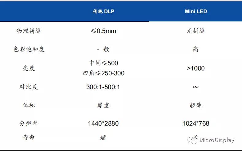 表4:傳統DLP與miniLED顯示屏特性對(duì)比