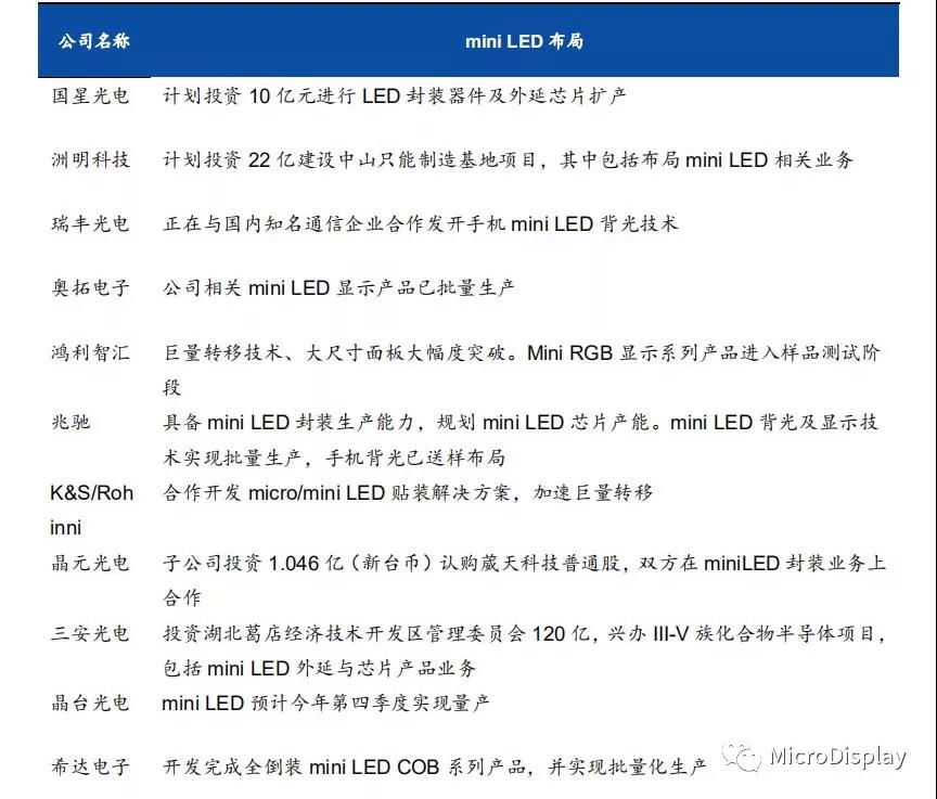 表1:2019年上半年miniLED行業進(jìn)展