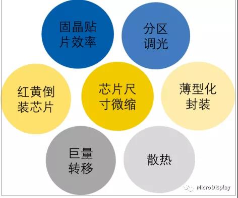 miniLED作爲小間距LED産品的延伸和MicroLED的前奏,雖然在2018年獲得較大突破,并在2019年迎來量産,但是在持續發(fā)展的過(guò)程中,仍面(miàn)臨來自芯片、封裝、驅動IC、巨量轉移等諸多方面(miàn)的新技術挑戰。