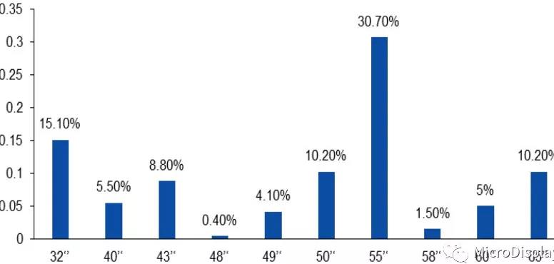 資料來源:國(guó)星光電RGB事(shì)業部,國(guó)元證券研究中心2.1.1miniLED背光在電視大尺寸應用市場前景因受制于量産良率,高分辨OLEDTV長(cháng)期面(miàn)臨著(zhe)成(chéng)本高企的問題,而miniLED能(néng)夠在相對(duì)合理的成(chéng)本空間内實現曲面(miàn)及窄邊框顯示效果,且兼具寬色域、高對(duì)比度、薄型化特性,故有望在大尺寸電視背光領域一展身手。根據奧維雲網統計,截至2018年6月,電視重點銷售尺寸爲55英寸、32英寸、65英寸,其中增幅最大尺寸爲65英寸。由此可見,屏幕尺寸的不斷增長(cháng)是電視發(fā)展的重要趨勢,鑒于miniLED背光方案在高清大屏方面(miàn)獨特的技術優勢,我們認爲其必將(jiāng)在大尺寸電視領域有所作爲