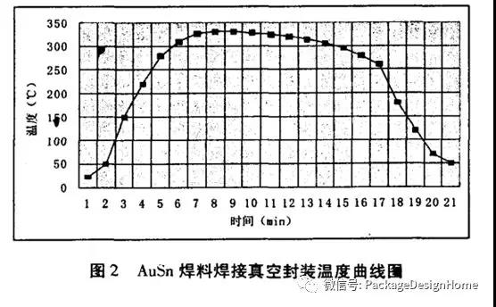 AuSn(80:20)合金焊料在焊接時(shí)所施加的溫度應使焊料能(néng)夠有足夠的流動性和潤濕性,這(zhè)個溫度大約高出焊料熔點50℃(約330℃)。在焊接封裝過(guò)程中,基于AuSn合金焊料的共晶成(chéng)分,很小的過(guò)熱度就(jiù)可以使合金溶化并浸潤,且合金的凝固過(guò)程也進(jìn)行得很快。因此,AuSn合金焊料的使用大大縮短了封裝焊接周期。AuSn焊料焊接封裝的溫度是影響焊接封裝質量最重要的因素之一,圖2是AuSn焊料的真空焊接封裝溫度曲線圖,由圖可見,當加熱初期時(shí),由于真空度低,加熱速率快,所以升溫速率快,随著(zhe)真空度和爐溫的升高,升溫速率也随著(zhe)放慢,而在降溫階段,由于前期是真空狀态下降溫,所以降溫速率較慢,當通人氮氣或大氣後(hòu),其降溫速率明顯加快。
