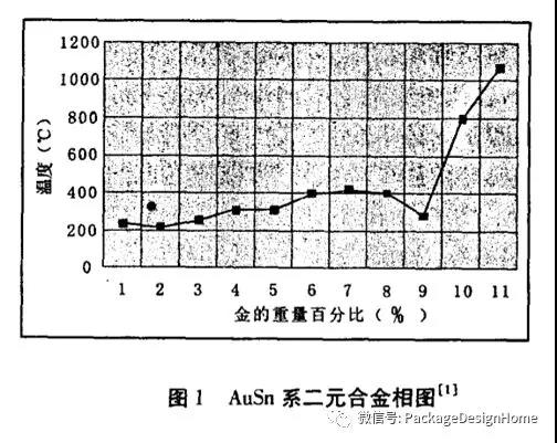 (3)焊料成(chéng)分對(duì)封裝焊接質量的影響。一定比例的含量成(chéng)分有其一定的熔點,當焊料成(chéng)分發(fā)生變化時(shí),其熔點也随之而變動.從而也影響了焊料的浸潤性,對(duì)焊接質量不利。因此當使用某低熔點合金焊料時(shí),首先要保證焊料的成(chéng)分必須穩定,并嚴格控制其他金屬元素和雜質的浸入。AuSn合金所用原材料系由純度分别爲:Au99.95%和Sn99.99%所組成(chéng),其組成(chéng)比例:Sn:Au=20:80.考慮到焊接時(shí)外殼金屬上框和蓋闆上的鍍金層有一部分將(jiāng)要參與共同形成(chéng)共晶體,所以焊料實際配方中Au的含量爲78%,Sn的含量爲22%,AuSn系二元合金,其相圖如圖1所示。
