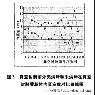 首先,殼體材料是影響焊接封裝真空度的一個重要因素。由于材料具有吸氣特性,在真空焊接封裝過(guò)程中的高溫下吸附的氣體將(jiāng)會(huì)釋放,將(jiāng)對(duì)真空封裝後(hòu)器件腔體内的真空度有影響。如圖3所示爲真空封裝殼體在真空封裝前烘烤與未烘烤的對(duì)比曲線。由圖3中可以看到未烘烤的殼體,真空封裝後(hòu)器件腔體内的平均真空度在9—1OPa這(zhè)樣(yàng)一個水平,而烘烤過(guò)6h的器件真空封裝後(hòu)腔體内的平均真空度在5Pa左右。可見真空封裝殼體在封裝前對(duì)其進(jìn)行烘烤可以提高真空封裝後(hòu)器件腔體内的平均真空度。