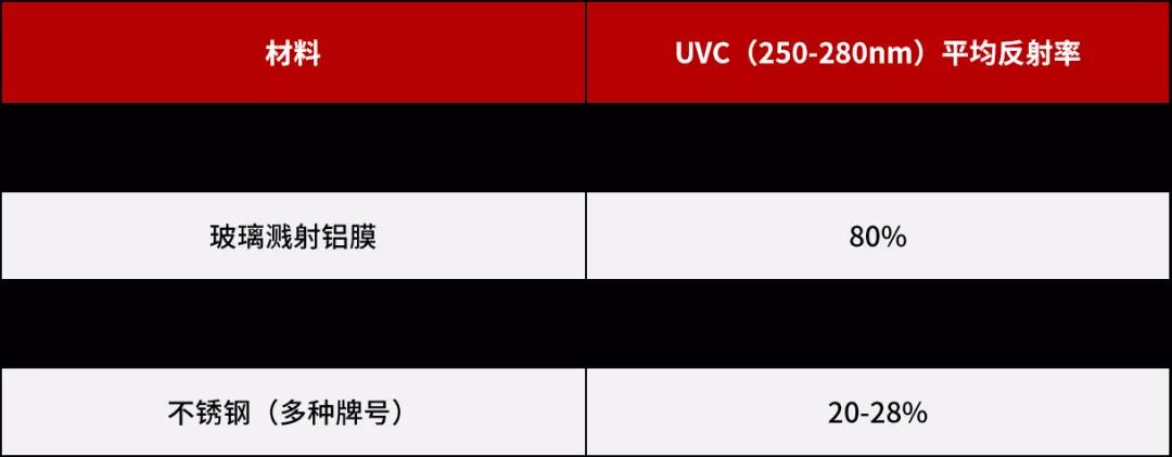 水杯内壁的材料的紫外反射率影響紫外光的穿透性,杯子越深,杯口越小,内壁材料的反射率影響越大。