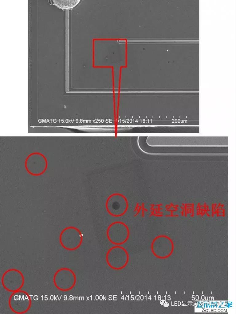 LED外延片在高溫長(cháng)晶過(guò)程中,襯底、MOCVD反應腔内殘留的沉積物、外圍氣體和Mo源都(dōu)會(huì)引入雜質,這(zhè)些雜質會(huì)滲入磊晶層,阻止氮化镓晶體成(chéng)核,形成(chéng)各種(zhǒng)各樣(yàng)的外延缺陷,最終在外延層表面(miàn)形成(chéng)微小坑洞,這(zhè)些也會(huì)嚴重影響外延片薄膜材料的晶體質量和性能(néng)。