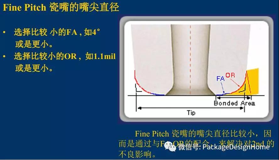 嘴尖直徑越小,2nd Bond area 就(jiù)越小,容易造成(chéng)2nd Bond Non-stick ,斷線。